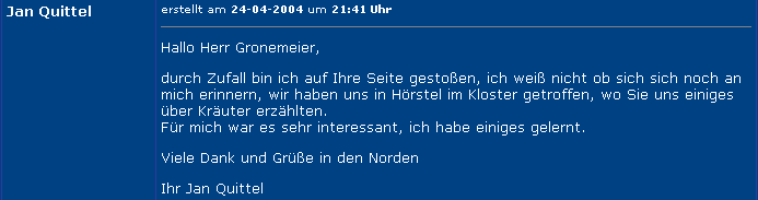Eine Kundenrezension von Herrn Jan Quittel, einem zufriedenen Teilnehmer, von einer meiner eßbaren Heil - Wildkräuter Lehrwanderungen: